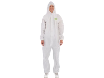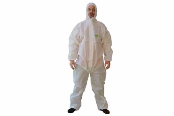 סרבל מגן *לבן* תקן TYPE 5/6 מידה XXL רוכסן עם כובע SMS coverall נושם DKR30303