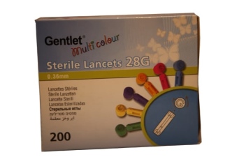 דוקרנים למד סוכר פלסטיק כחול סטריליים לבדיקת סוכר 100 יח' STERILANCE 28G