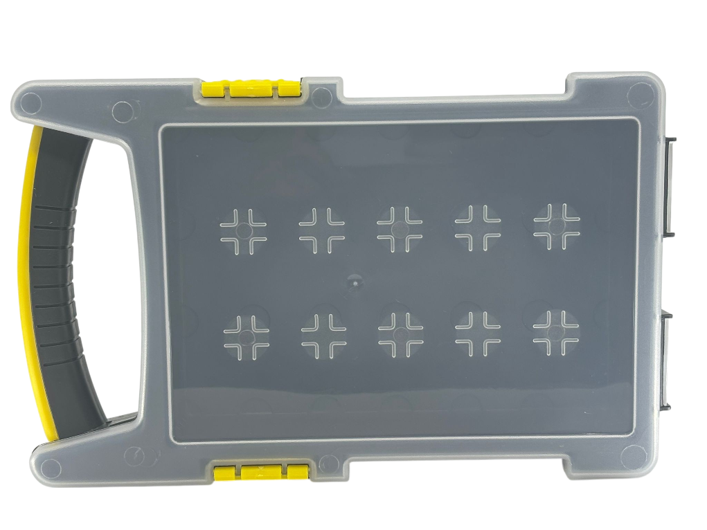 מזוודה פלסטיק ריקה חצי שקופה בר 20 DKR תחתית שחורה עליון שקוף
