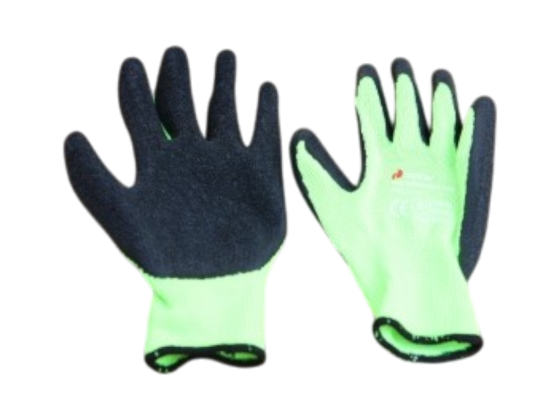 כפפות עבודה כותנה צהוב זוהר מושפרץ לטקס שחור יפני EN388 EN420 DKRL220-10 בלוקים גינון וזכוכי
