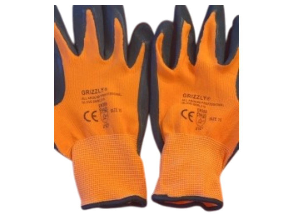 כפפת עבודה ציפוי לטקס מוקצף ספוגי , גב היד פוליאסטר כתום/שחור זוהר מידה 10 – L219 EN388 EN420
