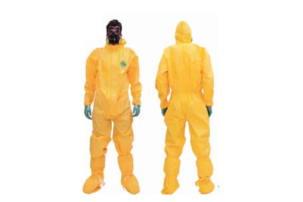 סרבל מגן תקן TYPE 3/4/5/6 82grמידה XXL רוכסן כפול עם כובע אטום raychem4500