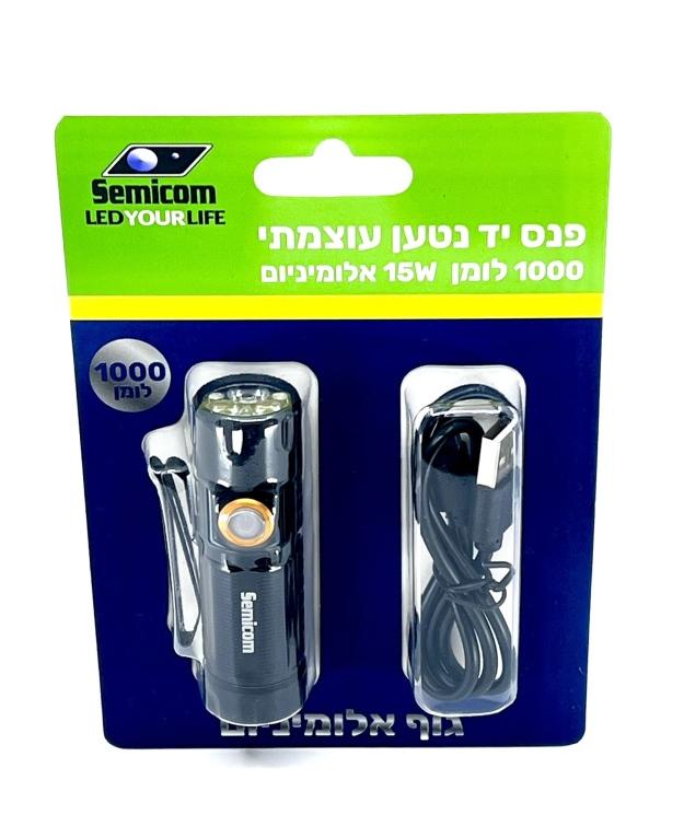 פנס יד נטען עוצמתי 1000 לומן 15W אלומיניום