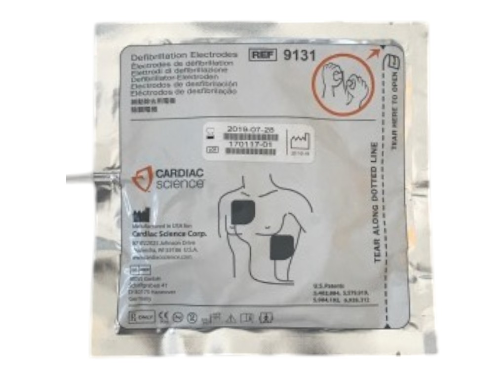 מדבקות אלקטרודות לדפיברילטור PowerHeart AED G3 מתוצרת Cardiac Science מיועדות לשימוש במקרי חירום של דום לב פתאומי. האלקטרודות מאפשרות חיבור מהיר ונוח למכשיר הדפיברילטור, ומסייעות בזיהוי קצב הלב ומתן שוק חשמלי במקרה הצורך.