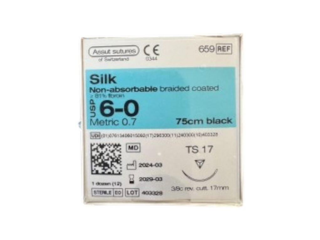 חוט משי 6/0 לתפירה + מחט TS17 סטרילי 12 יח' תכלת (659)