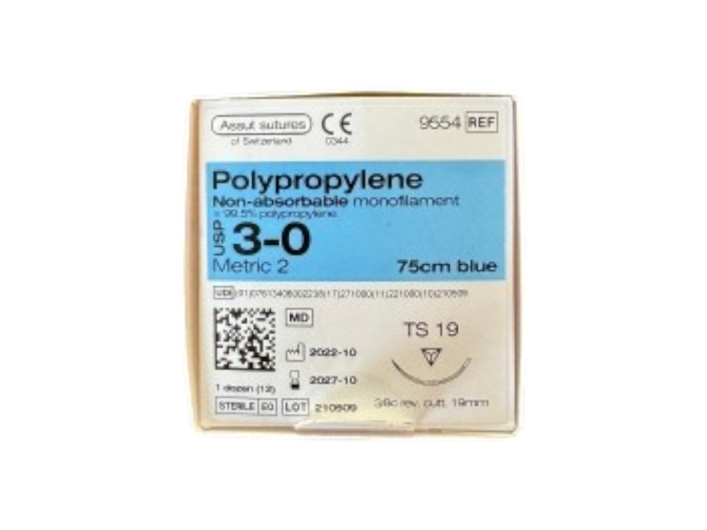 חוט פוליפרופילן לתפירה + מחט 3/0 סטרילי מחט TS19 כחול (9554)