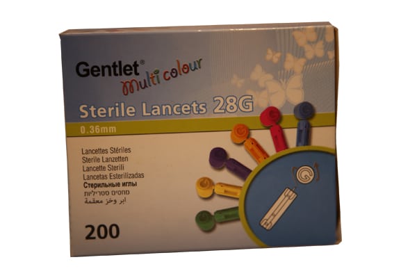 דוקרנים למד סוכר פלסטיק כחול סטריליים לבדיקת סוכר 100 יח' STERILANCE 28G