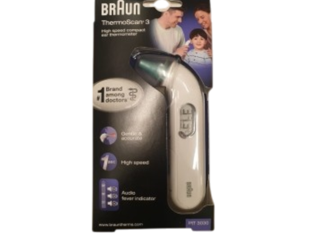 מד חום דיגיטלי לאוזן BRAUN כולל 21 כיסויים ו 2- סוללות AA- IRT3030