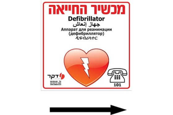 40/40 שלט PVC לדפיברילטור תוספת שניה תקנה 5 (עם רווח לחץ הכוונה) +