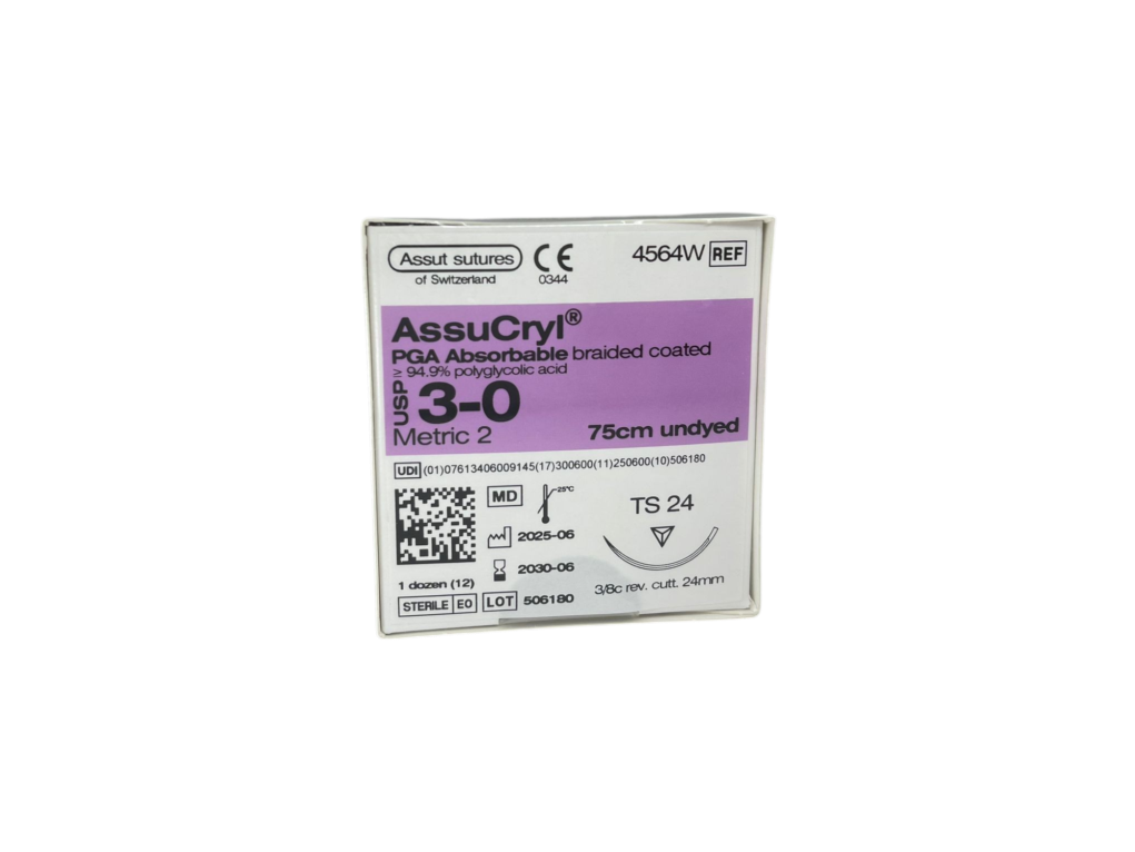 חוט נספג AssuCryl 3/0 לתפירה + מחט TS24 סטרילי 12 יח' סגול (4564W)